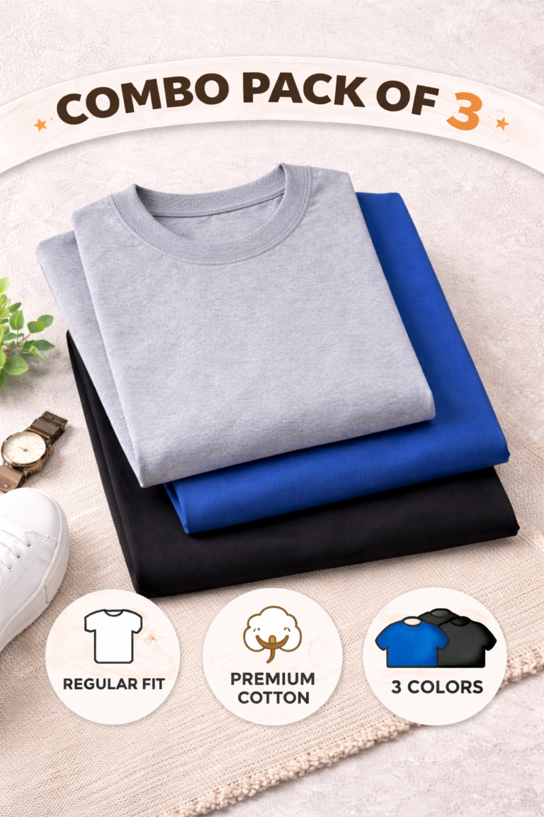 Regular Tshirts Combo | Black, Blue & Grey (3 T-Shirts)