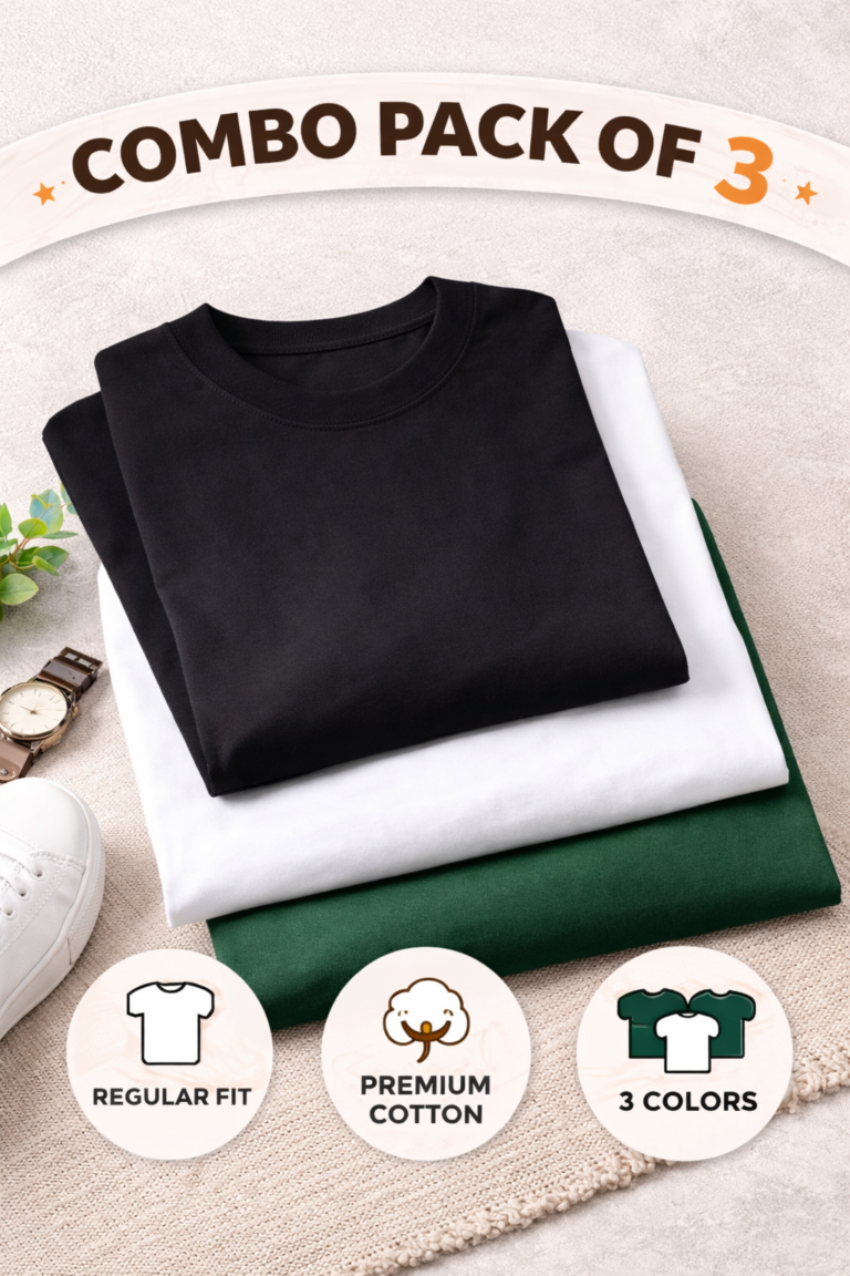 Regular Tshirts Combo | Black, White & Green (3 T-Shirts)